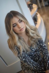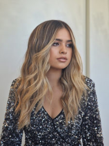 Na participação, incluÃmos uma transição de morena para loira, dando especial atenção à técnica de balayage – essa maravilhosa forma de criar luz, sombra e dimensão no cabelo. Depois de preparar os fios para o processo quÃmico, selecionámos e costurámos cuidadosamente as mechas, matizando e esfumando de seguida a raiz.